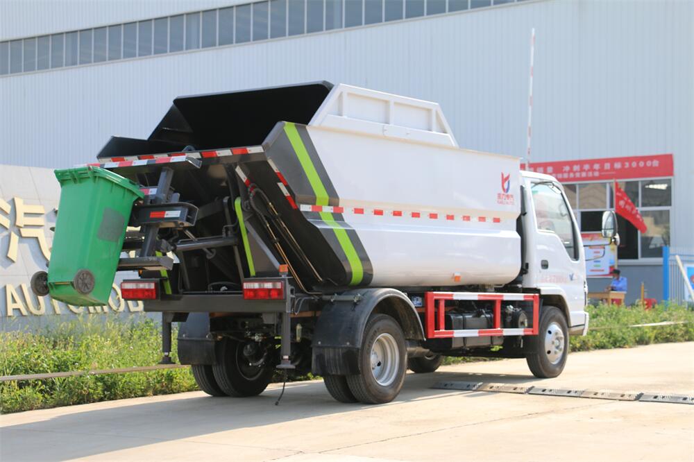 掛桶垃圾車是由密封式垃圾廂、液壓系統(tǒng)、操作系統(tǒng)組成,實現(xiàn)一車與多個垃圾桶聯(lián)合作業(yè),廂體上的液壓提升機裝置可將垃圾桶吊上、放下,上下升降。掛桶垃圾車的特點是一個車能配幾十個垃圾桶,能實現(xiàn)一臺車與多個垃圾桶聯(lián)合作業(yè),循環(huán)運輸,充分提高了車輛的運輸能力,特別適用于短途運輸,如環(huán)衛(wèi)部門對城鎮(zhèn)垃圾的清理、運輸?shù)取M瑫r,掛桶垃圾車還可以加裝其它功能,形成其它多功能掛桶垃圾車,如:掛桶壓縮式垃圾車、掛桶式泔水垃圾車、掛桶式對接垃圾車等。