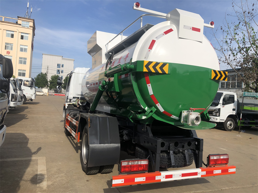 上裝配置:罐體容積8m3,配備120L/240L掛桶提升翻轉機構,液壓系統,后蓋液壓鎖緊開啟,罐體可以舉升自卸,尾部帶自流閥;用于運輸液態垃圾,其特點操作簡單,密封性好,無泄漏,無異味;可選裝固液分離功能,推板擠壓功能,常用于餐館的垃圾轉運處理。
