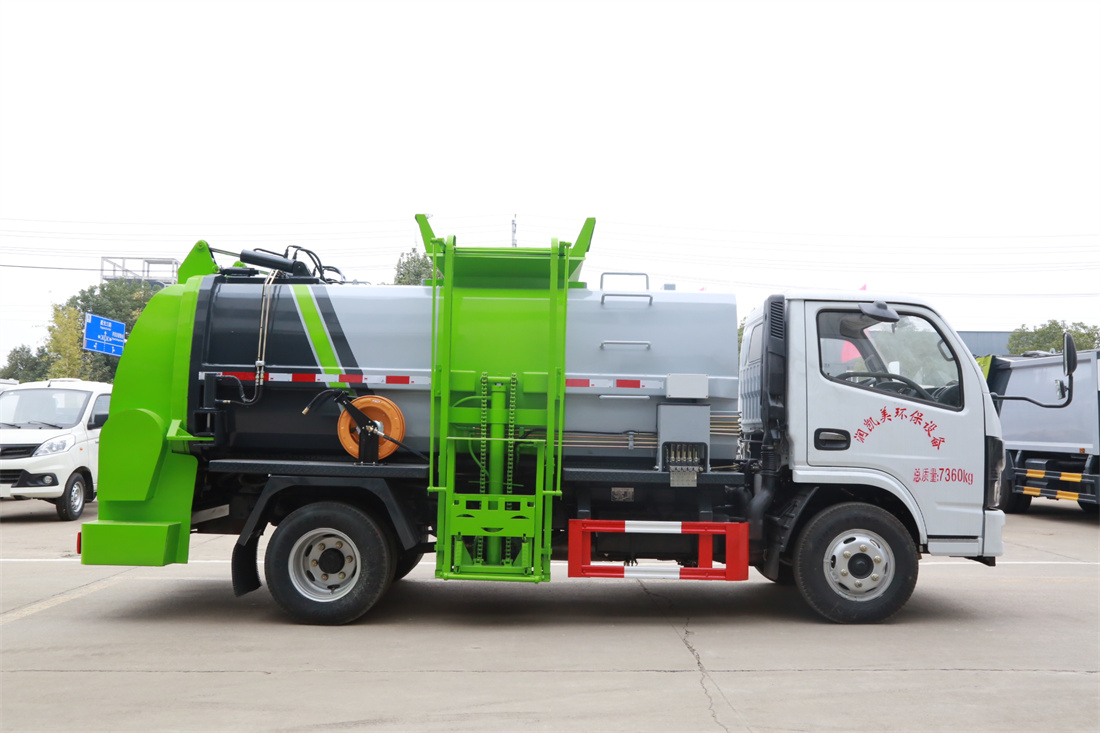 上裝配置:罐體容積6m3,配備120L/240L掛桶提升翻轉(zhuǎn)機構(gòu),液壓系統(tǒng),后蓋液壓鎖緊開啟,罐體可以舉升自卸,尾部帶自流閥;用于運輸液態(tài)垃圾,其特點操作簡單,密封性好,無泄漏,無異味;可選裝固液分離功能,推板擠壓功能,常用于餐館的垃圾轉(zhuǎn)運處理。