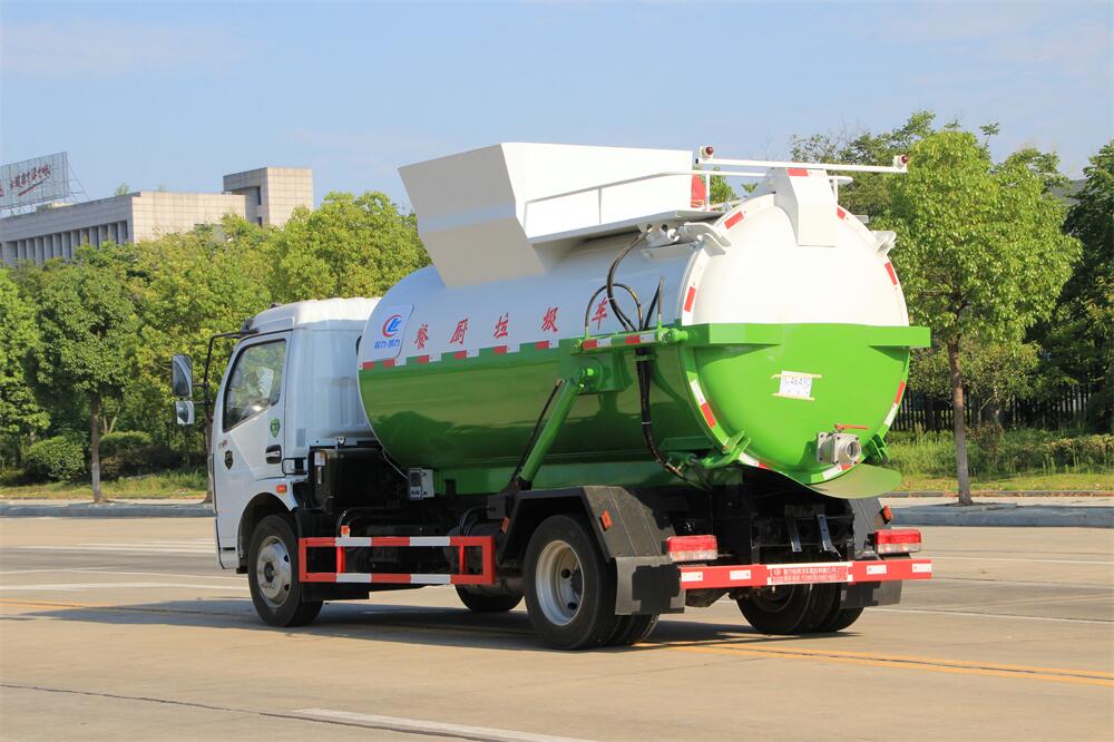 餐廚垃圾車或者餐余垃圾車、泔水車,是用于收集和運輸生活垃圾、食品垃圾(泔水)及城市淤泥的專用車輛。具有自裝、自卸、固液分離、壓縮垃圾自動化程度高、密封性好、操作簡便、無污水泄露和異味的散發等特點。