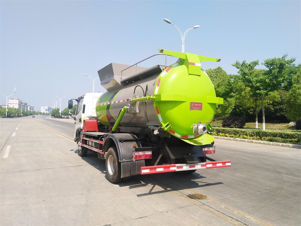 上裝配置:罐體容積8m3,配備120L/240L掛桶提升翻轉(zhuǎn)機(jī)構(gòu),液壓系統(tǒng),后蓋液壓鎖緊開(kāi)啟,罐體可以舉升自卸,尾部帶自流閥;用于運(yùn)輸液態(tài)垃圾,其特點(diǎn)操作簡(jiǎn)單,密封性好,無(wú)泄漏,無(wú)異味;可選裝固液分離功能,推板擠壓功能,常用于餐館的垃圾轉(zhuǎn)運(yùn)處理。