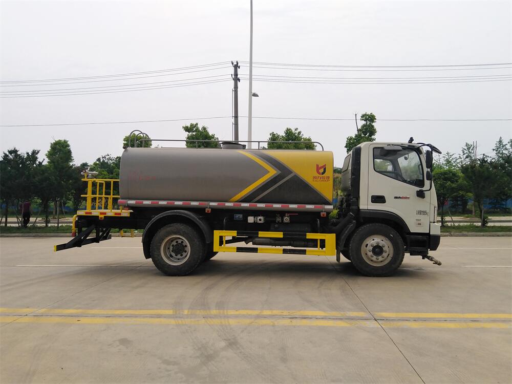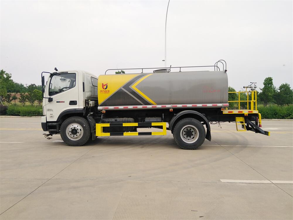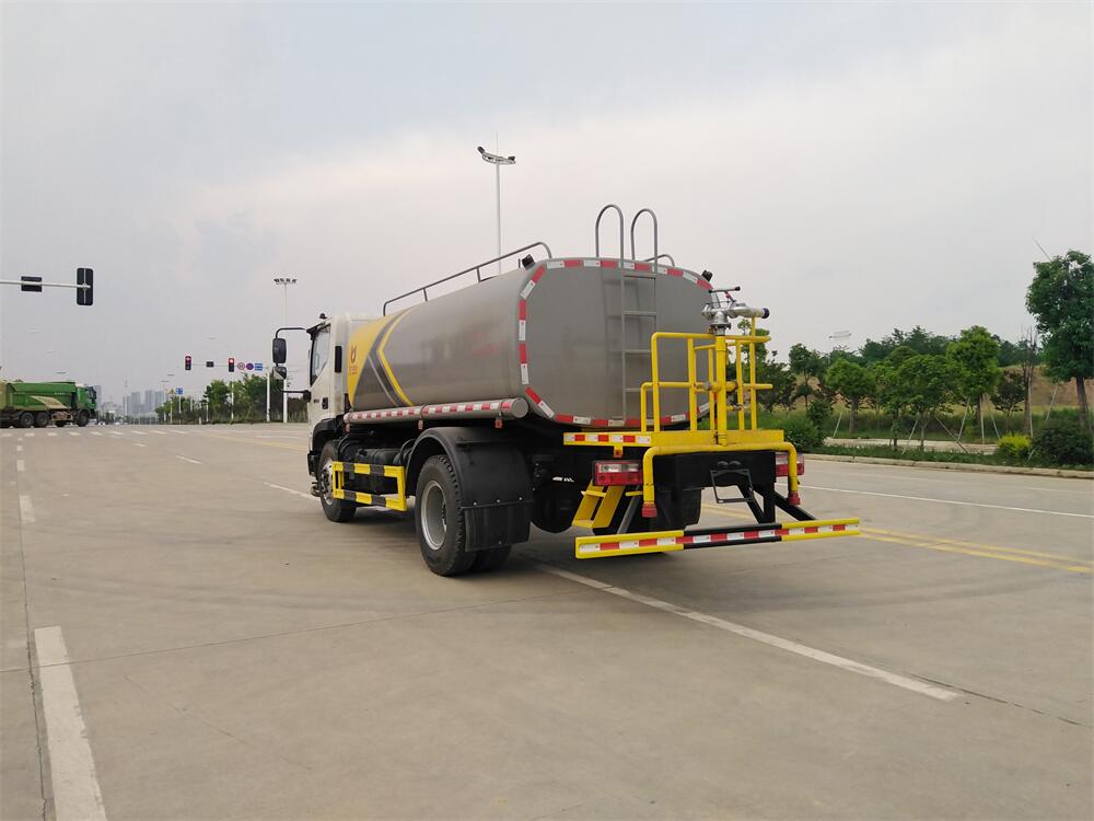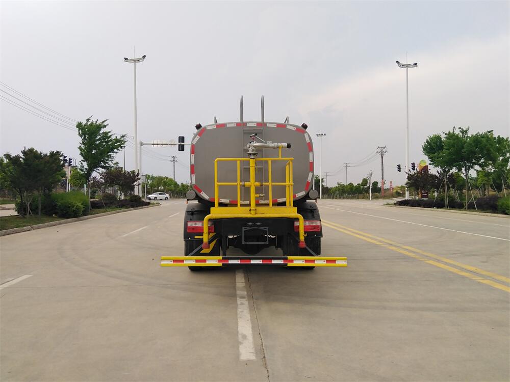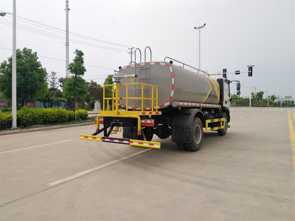灑水車前裝有鴨形噴嘴或圓頭沖嘴,后面裝有圓柱開灑水噴嘴或蓮蓬頭噴嘴,后部有一工作平臺(tái),裝配有水炮。后部還可裝8個(gè)噴嘴(選裝)。