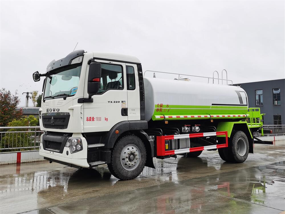 灑水車前裝有鴨形噴嘴或圓頭沖嘴,后面裝有圓柱開灑水噴嘴或蓮蓬頭噴嘴,后部有一工作平臺,裝配有水炮。后部還可裝8個噴嘴(選裝)。