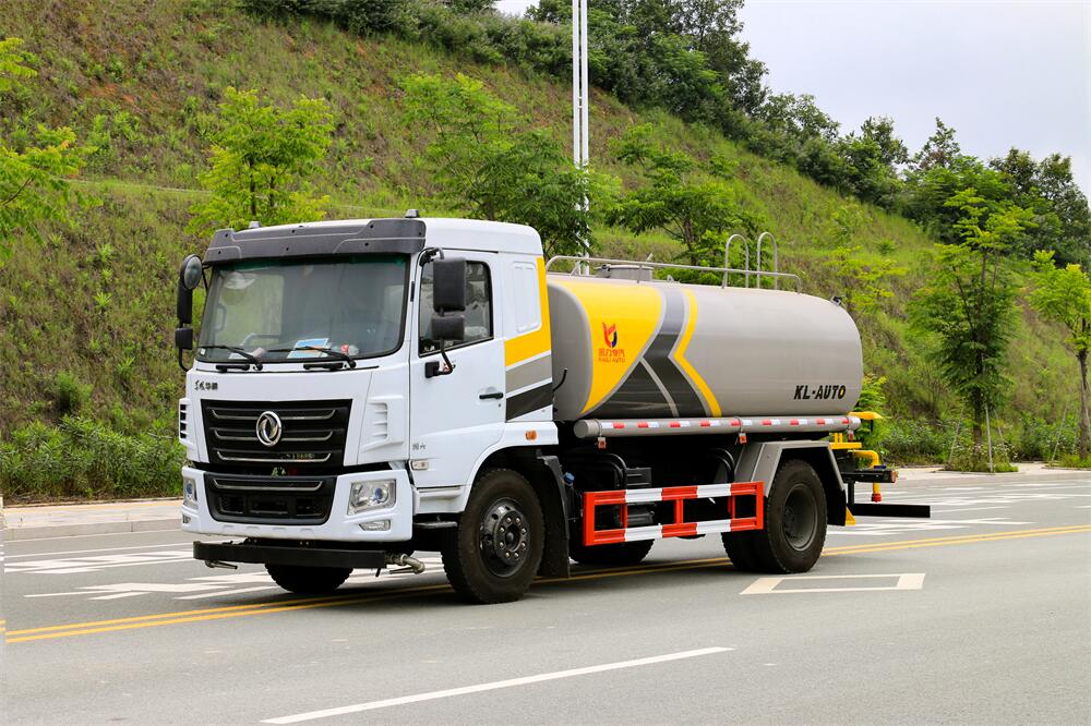 灑水車前裝有鴨形噴嘴或圓頭沖嘴,后面裝有圓柱開灑水噴嘴或蓮蓬頭噴嘴,后部有一工作平臺,裝配有水炮。后部還可裝8個噴嘴(選裝)。