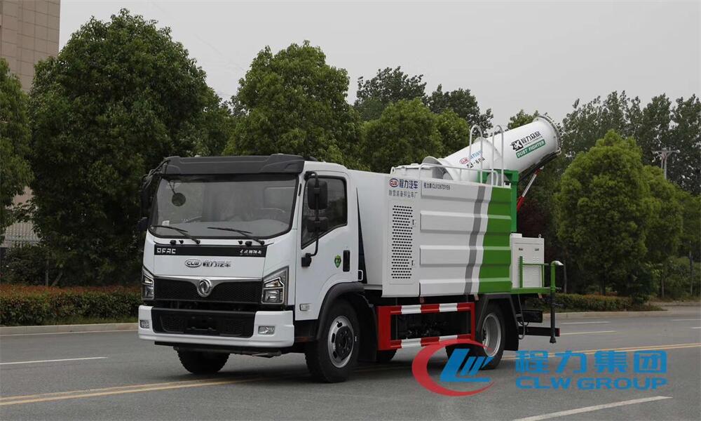上裝配置:罐體容積為 12立方,選配風送式霧炮機組射程30米、40米、50米、60米、80米、100米、120米霧炮,罐體鋼板為4mm碳鋼Q235材質(zhì),罐內(nèi)隔板具有防波作用,以減輕汽車行駛時罐體液體沖擊,罐體及整車外形尺寸按照公告。帶大功率專用灑水泵,泵可自吸自排,整車前沖、后灑、側噴、帶65消防接口,后平臺配CLW-50、CLW-60、CLW-80、CLW-100、CLW-120型風送式霧炮機組;罐體前封頭配大功率柴油發(fā)電機組;前封頭帶水位計,后平臺主管路帶1寸澆花接口,后爬梯。帶兩根輸水管及陰陽端。罐體顏色:銀/灰/綠,罐體兩側噴“多功能抑塵車”字樣,貼反光標示。