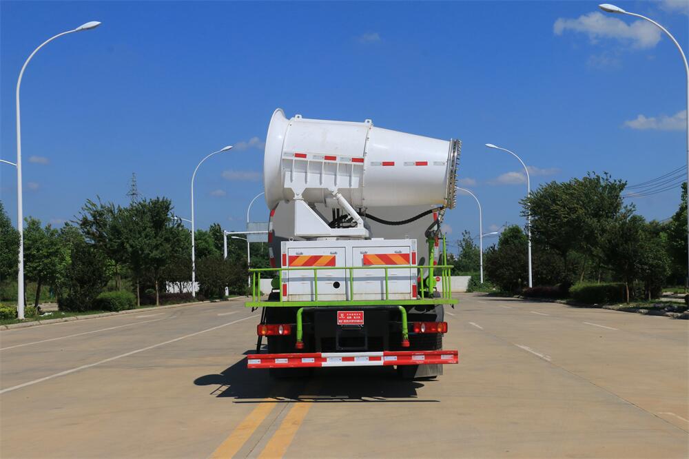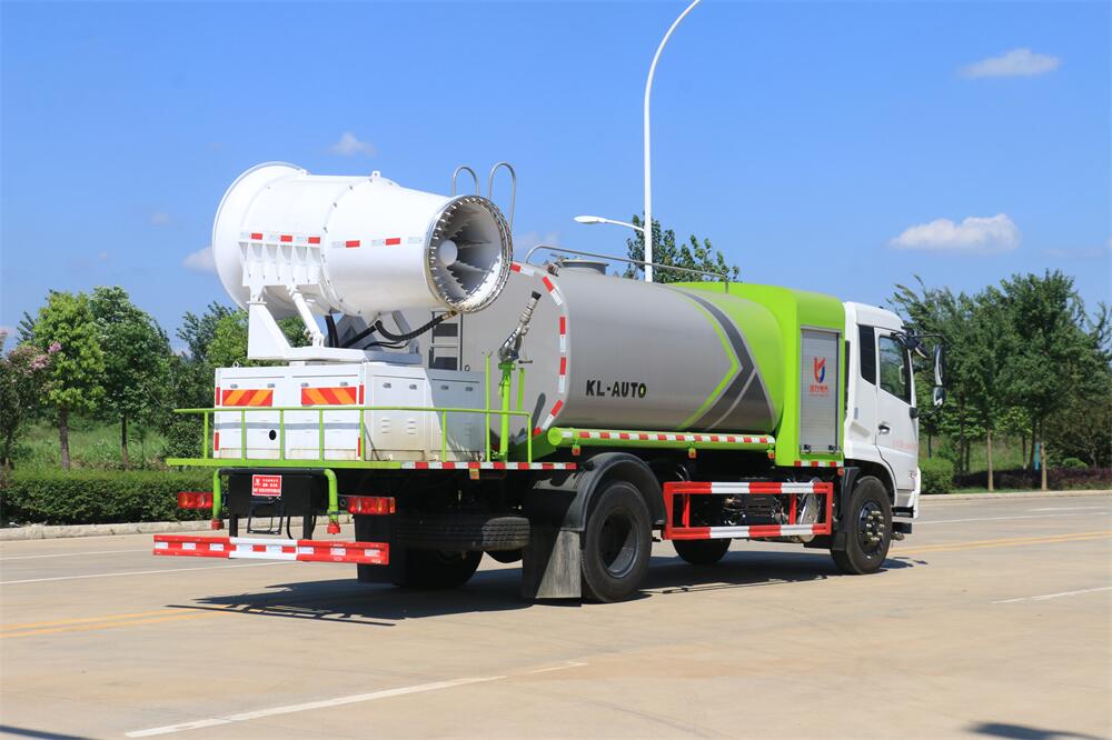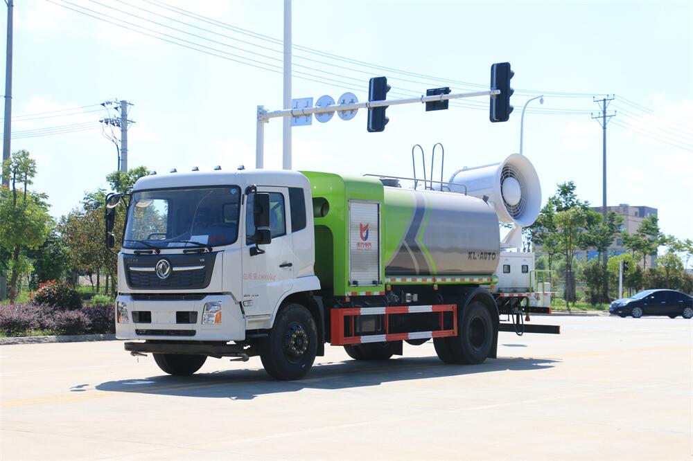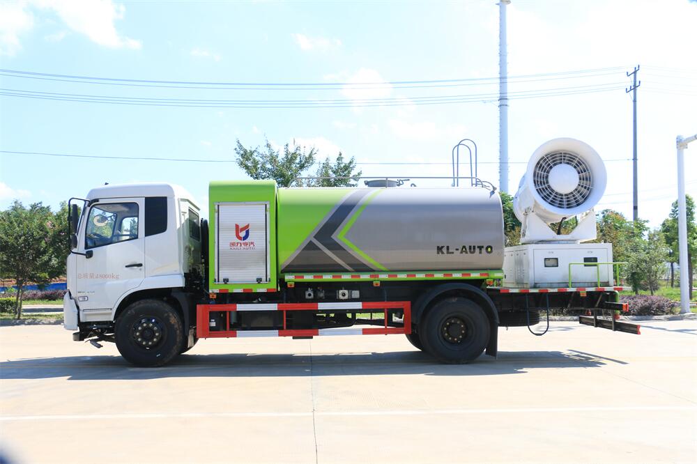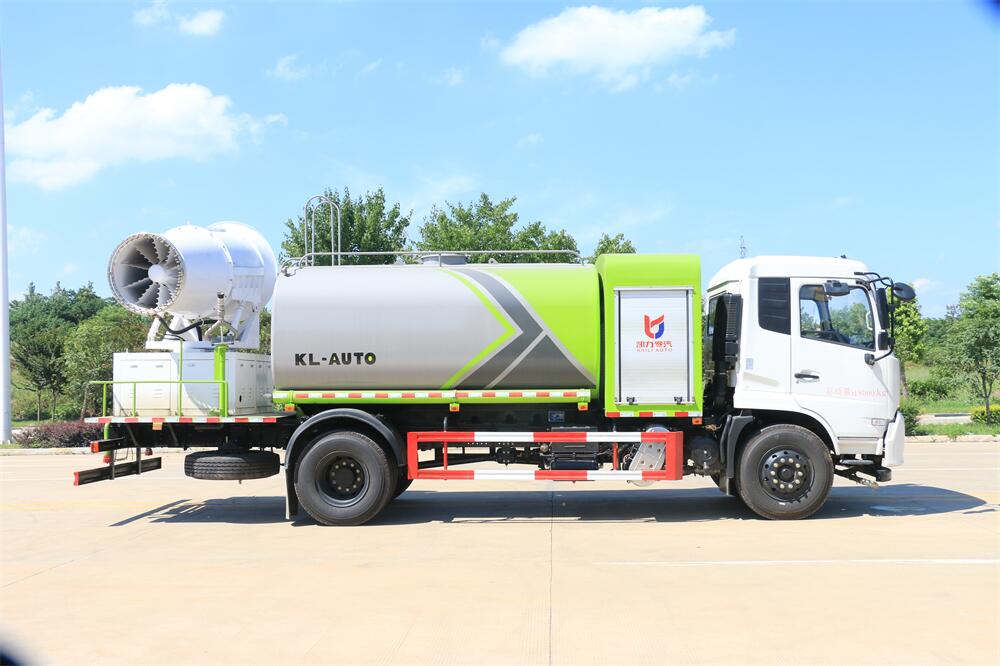 上裝配置:罐體容積為 12立方,選配風(fēng)送式霧炮機(jī)組射程30米、40米、50米、60米、80米、100米、120米霧炮,罐體鋼板為4mm碳鋼Q235材質(zhì),罐內(nèi)隔板具有防波作用,以減輕汽車行駛時罐體液體沖擊,罐體及整車外形尺寸按照公告。帶大功率專用灑水泵,泵可自吸自排,整車前沖、后灑、側(cè)噴、帶65消防接口,后平臺配CLW-50、CLW-60、CLW-80、CLW-100、CLW-120型風(fēng)送式霧炮機(jī)組;罐體前封頭配大功率柴油發(fā)電機(jī)組;前封頭帶水位計,后平臺主管路帶1寸澆花接口,后爬梯。帶兩根輸水管及陰陽端。罐體顏色:銀/灰/綠,罐體兩側(cè)噴“多功能抑塵車”字樣,貼反光標(biāo)示。