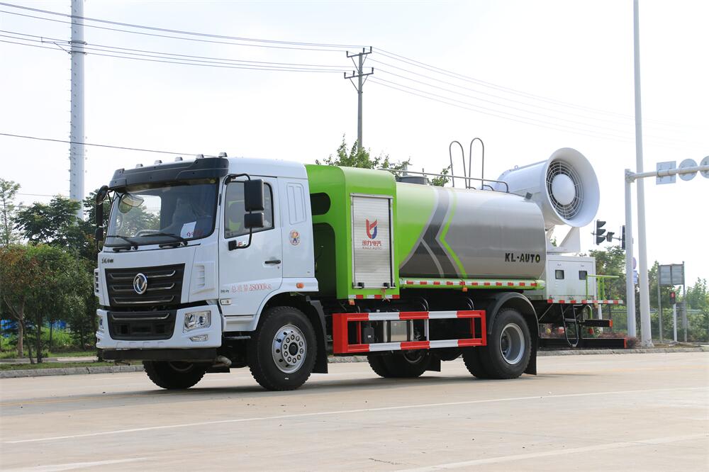 上裝配置:罐體容積為 12立方,選配風(fēng)送式霧炮機(jī)組射程30米、40米、50米、60米、80米、100米、120米霧炮,罐體鋼板為4mm碳鋼Q235材質(zhì),罐內(nèi)隔板具有防波作用,以減輕汽車行駛時(shí)罐體液體沖擊,罐體及整車外形尺寸按照公告。帶大功率專用灑水泵,泵可自吸自排,整車前沖、后灑、側(cè)噴、帶65消防接口,后平臺(tái)配CLW-50、CLW-60、CLW-80、CLW-100、CLW-120型風(fēng)送式霧炮機(jī)組;罐體前封頭配大功率柴油發(fā)電機(jī)組;前封頭帶水位計(jì),后平臺(tái)主管路帶1寸澆花接口,后爬梯。帶兩根輸水管及陰陽端。罐體顏色:銀/灰/綠,罐體兩側(cè)噴“多功能抑塵車”字樣,貼反光標(biāo)示。