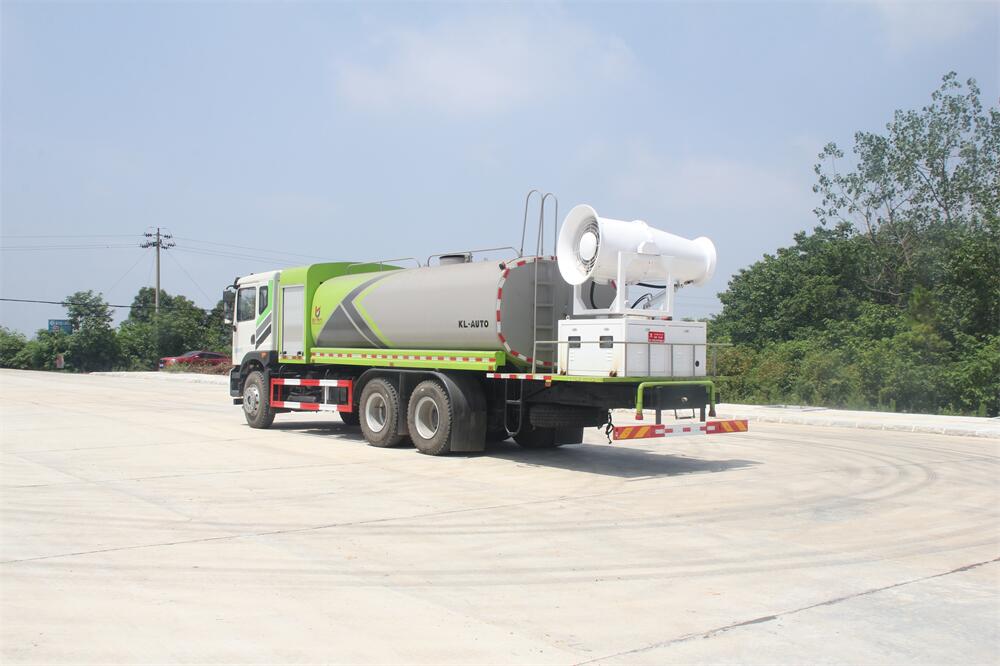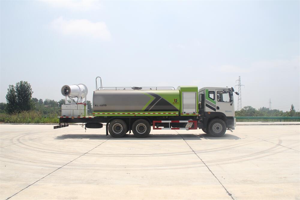 上裝配置:罐體容積為 16立方,選配風(fēng)送式霧炮機(jī)組射程30米、40米、50米、60米、80米、100米、120米霧炮,罐體鋼板為4mm碳鋼Q235材質(zhì),罐內(nèi)隔板具有防波作用,以減輕汽車行駛時(shí)罐體液體沖擊,罐體及整車外形尺寸按照公告。帶大功率專用灑水泵,泵可自吸自排,整車前沖、后灑、側(cè)噴、帶65消防接口,后平臺(tái)配CLW-50、CLW-60、CLW-80、CLW-100、CLW-120型風(fēng)送式霧炮機(jī)組;罐體前封頭配大功率柴油發(fā)電機(jī)組;前封頭帶水位計(jì),后平臺(tái)主管路帶1寸澆花接口,后爬梯。帶兩根輸水管及陰陽端。罐體顏色:銀/灰/綠,罐體兩側(cè)噴“多功能抑塵車”字樣,貼反光標(biāo)示。