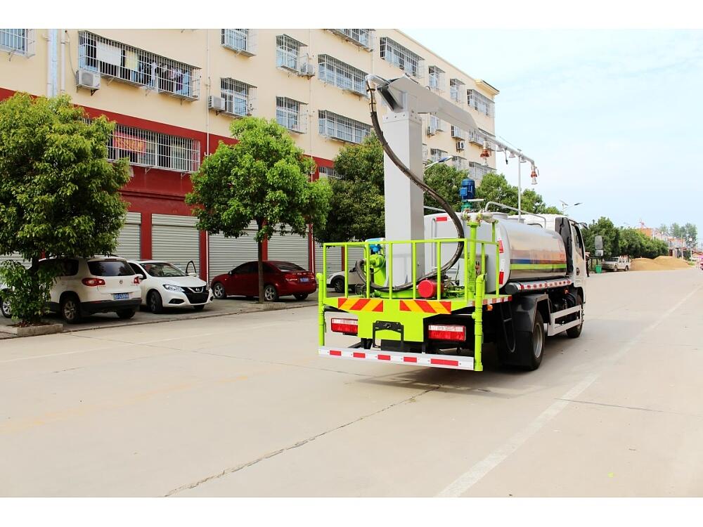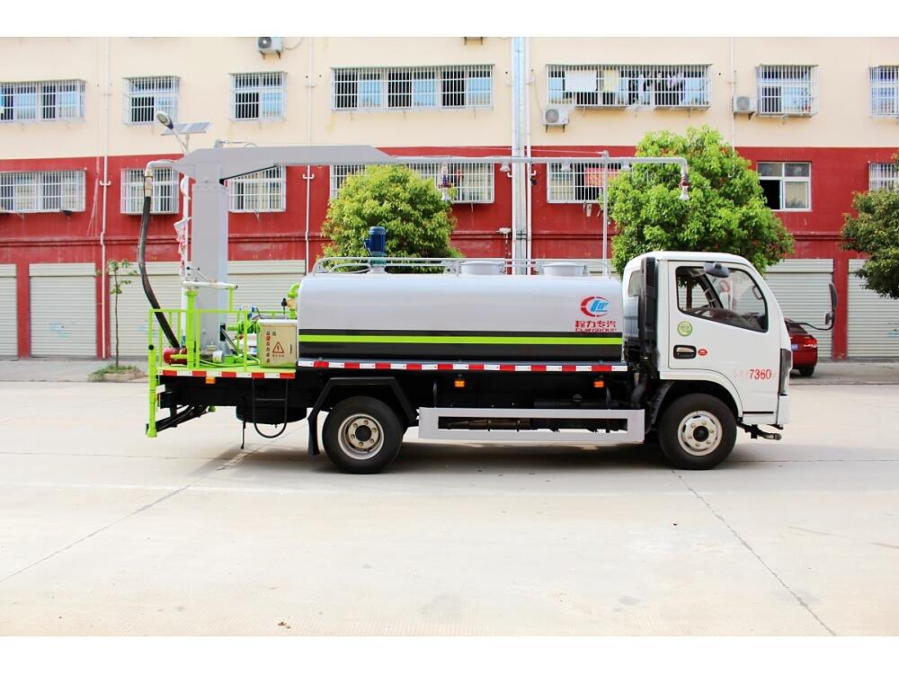 東風小多利卡抑塵固化劑噴灑車上裝配置:罐體為5立方圓形罐,罐體內部做防腐,帶加熱功能,前沖、后灑、側噴、高炮,抑塵噴灑桿(帶旋轉伸縮功能)。東風小多利卡抑塵固化劑噴灑車噴灑桿離地3.5-5米 ,后部平臺帶8KW副發(fā)電機組,罐體內部加兩個1.5KW電動馬達(帶攪拌功能)罐體噴漆上白下藍,平臺和噴灑桿藍色。遙控操作噴灑桿上下左右旋轉,國內知名品牌回轉支撐,大品牌油缸。