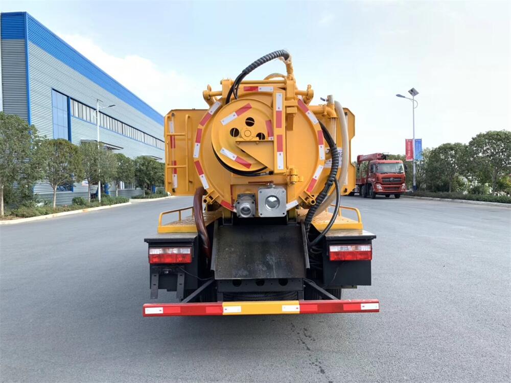配置SK-9水循環(huán)泵(可選裝油泵、杭州威龍泵)國產天津240KG/170流量高壓泵(可選裝進口高壓泵),60米19高壓管,8米吸污管一根,十個高強度噴頭,后一個100進污口,一個150排污口,罐體可舉升,后蓋可液壓開啟,全套為液壓操控,加大工具箱、視糞窗上帶球閥,一個洗手小球閥、兩個消防接口、兩個泄壓閥、加寬平臺、防溢閥,真空泵帶油水分離器,帶洗手裝置,管道清洗裝置,冬季吹水裝置。