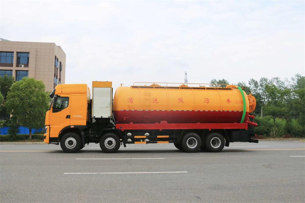 高壓清洗吸污車集沖洗、疏通、吸污、反排功能于一體,它使用于各種液狀、半液態,以及各種溝渠下面的污泥、糞便、廢水等介質的抽吸、裝運、排卸之用,還可用于突發環境污染事故的應急處理。這將大大提高清洗吸污車工作效率,增強作業能力。