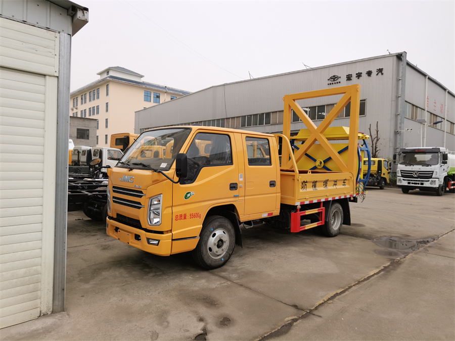 四,駕駛室后部裝有吊機,增加整車**功能,可用于客戶對施工中的重物進(jìn)行吊運。