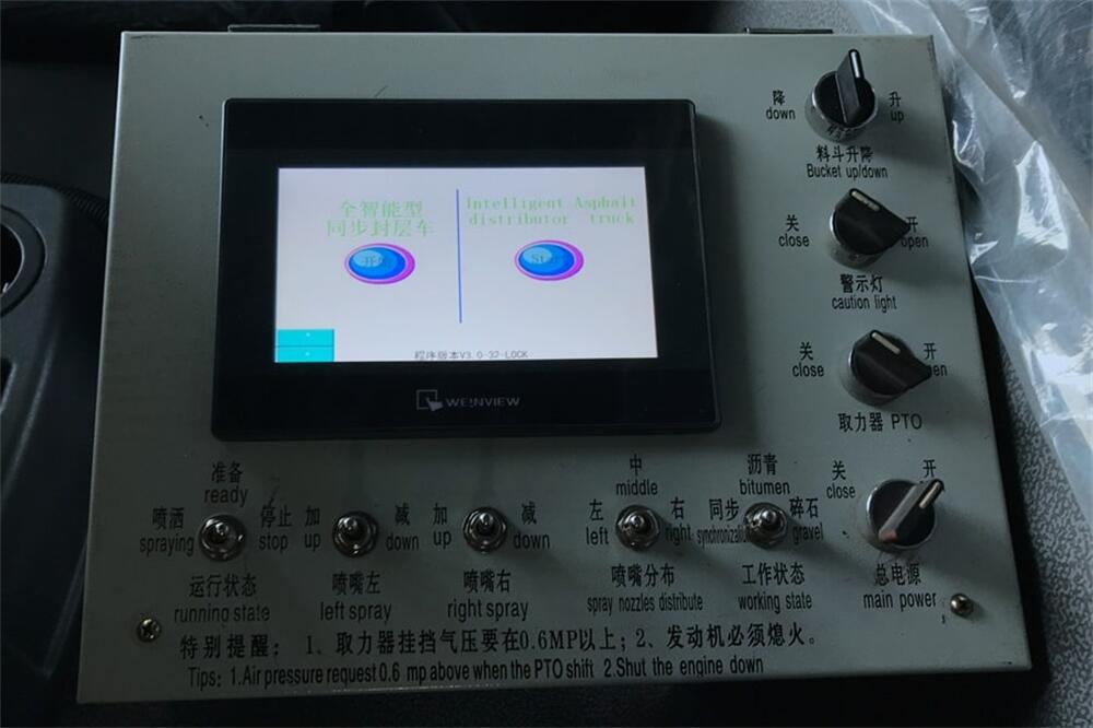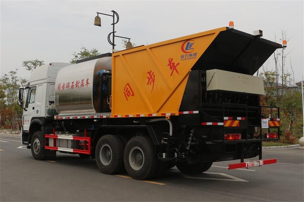 4、后雙橋同步碎石封層車完全采用電氣**,自動(dòng)化程度高,,能**的計(jì)算出設(shè)備在施工過程中瀝青噴灑量和石屑撒布量的多少;