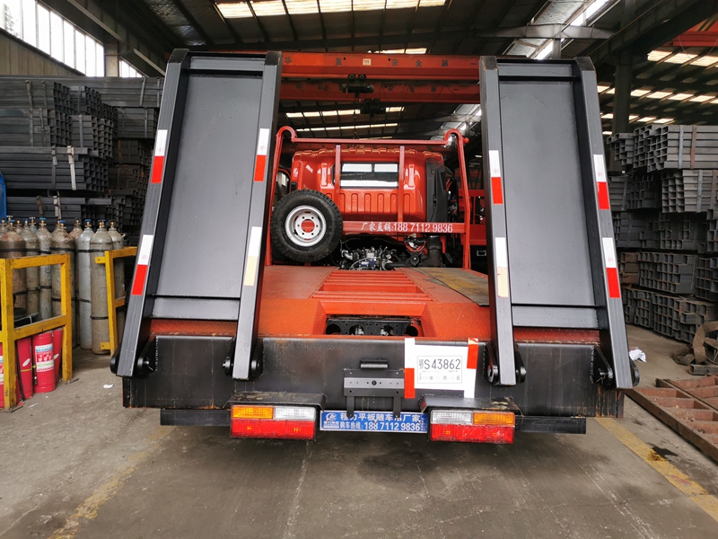 上裝采用五毫米花紋鋼板,100*100方鋼做橫梁,電動卷揚,簡易爬梯,可拉8噸以下挖機。